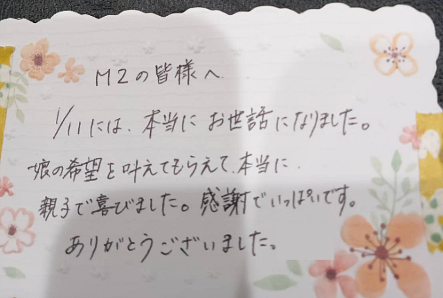 大切な晴れの日のお手伝いができたこと、そしてこのようなお気持ちをお寄せいただいたことに、心から感謝しております。