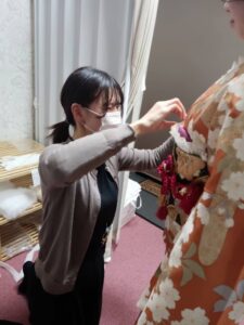 当日は、娘さまの「こんなふうにしたい」という想いを大切にしながら、スタッフみんなでお支度をさせていただきました。